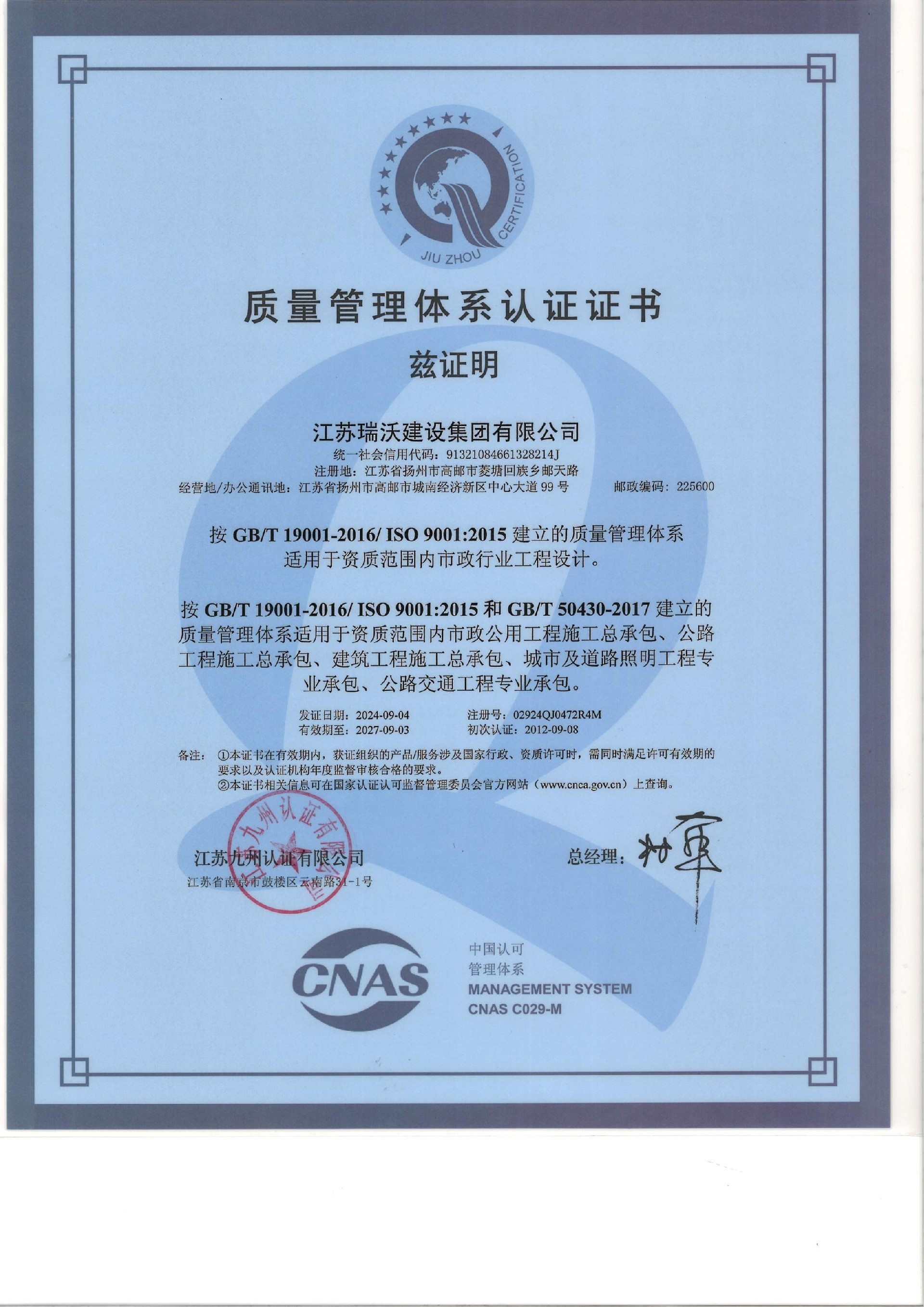 江蘇瑞沃建設集團有限公司成立于2007年,是一家以市政、交通工程建設為主導,集房屋建筑、交通安全設施、城市道路照明工程、電力工程、隧道工程、航道工程及投融資為一體的綜合性企業(yè)。企業(yè)注冊資本60000萬元,現(xiàn)有各類技術人員580人,其中中、高級以上人員498人,注冊類人員268人,一、二級建造師166人。公司榮獲“江蘇省建筑業(yè)優(yōu)秀企業(yè)”、“江蘇省五一勞動獎狀”,連續(xù)多年被評為“揚州市先進企業(yè)”、“江蘇省建筑業(yè)百強企業(yè)”,連續(xù)八年蟬聯(lián)百強企業(yè)基礎設施類第一名。